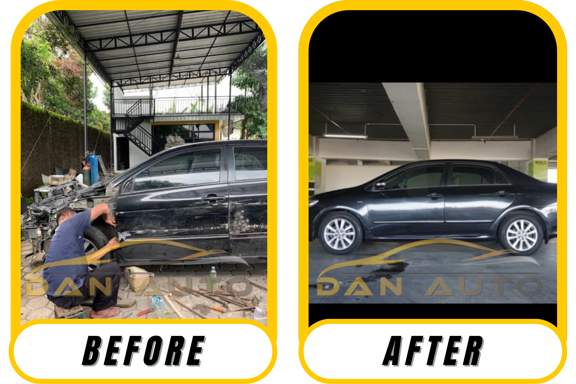 DAN AUTO adalah bengkel mobil terpercaya yang berlokasi di Yogyakarta. DAN AUTO dikenal dengan kualitas pelayanannya dan telah menjadi pilihan utama pemilik mobil yang menginginkan perawatan terbaik. Bengkel tersebut memiliki tim teknisi terpercaya yang berpengalaman dalam bidang perbaikan otomotif khususnya perbaikan bodi.